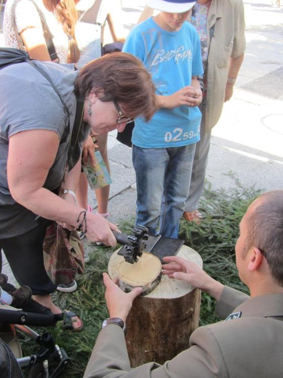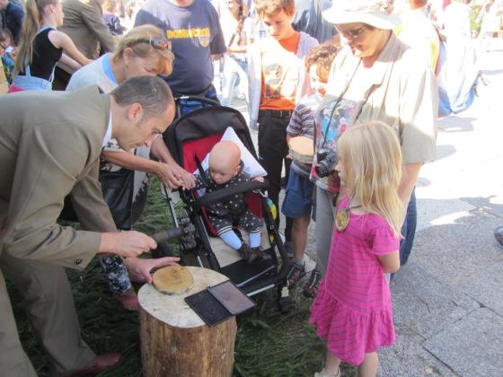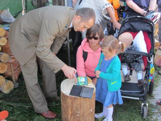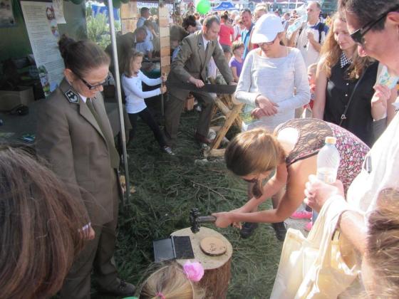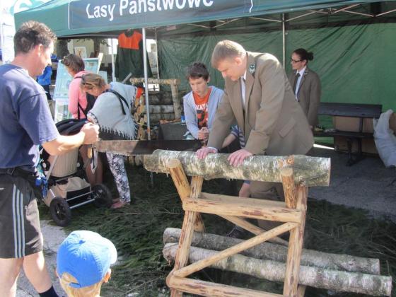 Prezentowaliśmy na nim sposoby pozyskania i zrywki drewna, pracę i sprzęt pilarza, informacje o drewnie jako naturalnym surowcu odnawialnym. Chętne osoby mogły spróbować swoich sił w przerzynce drewna piłą ręczną lub cechowaniu drewna historycznymi numeratorami.