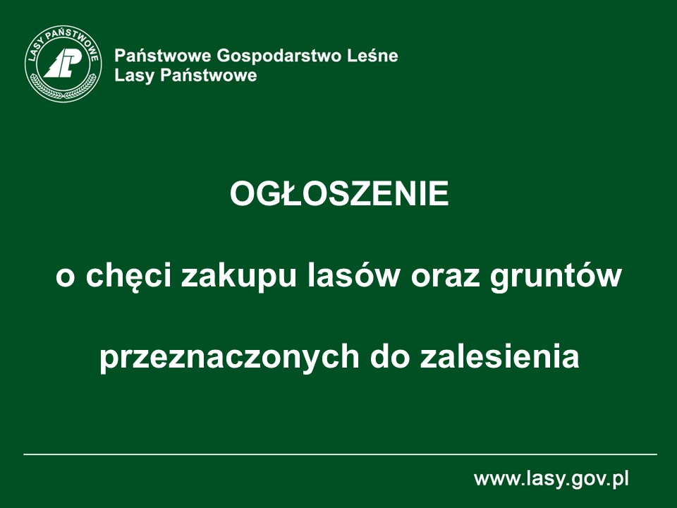Nadleśnictwo Kartuzy jest zainteresowane zakupem lasów oraz gruntów przeznaczonych do zalesienia na terenie gmin Kartuzy, Chmielno, Przodkowo, Somonino, Stężyca, Sierakowice, Kościerzyna (wsie Kłobuczyno i Kaliska Kościerskie) oraz Nowa Karczma (wieś Grabowo Kościerskie). Szczególnie dotyczy to terenów sąsiadujących z gruntami Nadleśnictwa Kartuzy.