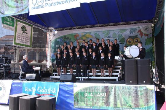 Na scenie estrady wszyscy zainteresowani mogli posłuchać występów zespołów muzycznych, koncertu sygnałów myśliwskich oraz obejrzeć prezentację tradycji sokolniczych. Na przygotowany pod hasłem „Dla lasu. Dla ludzi" program złożyły się koncerty i występy zespołów: Hubertus (sygnaliści myśliwscy), Pałac Młodzieży w Gdańsku, M22, Tygiel Folk Banda oraz - w koncercie finałowym - zespołu Sergiej Kriuczkow & Riverboat Ramblers. Na festynowej scenie ze swoimi występami pojawili się także Polski Zakon Sokolniczy oraz dzieci ze Szkolnego Chóru z Bukowiny.
